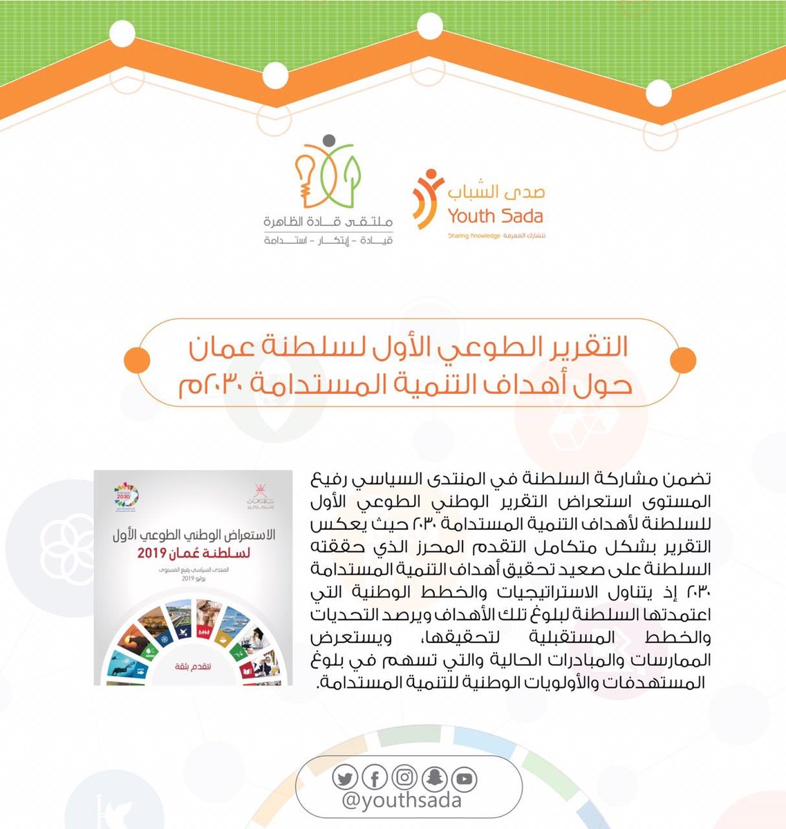 صدى الشباب Pa Twitter أطلقت السلطنة الاستعراض الوطني الطوعي الأول لسلطنة ع مان حول أهداف التنمية المستدامة 2030 والذي ستستعرضه في المنتدى السياسي الرفيع المستوى المنعقد في مقر الأمم المتحدة بعد غد الخميس للاطلاع على التقرير