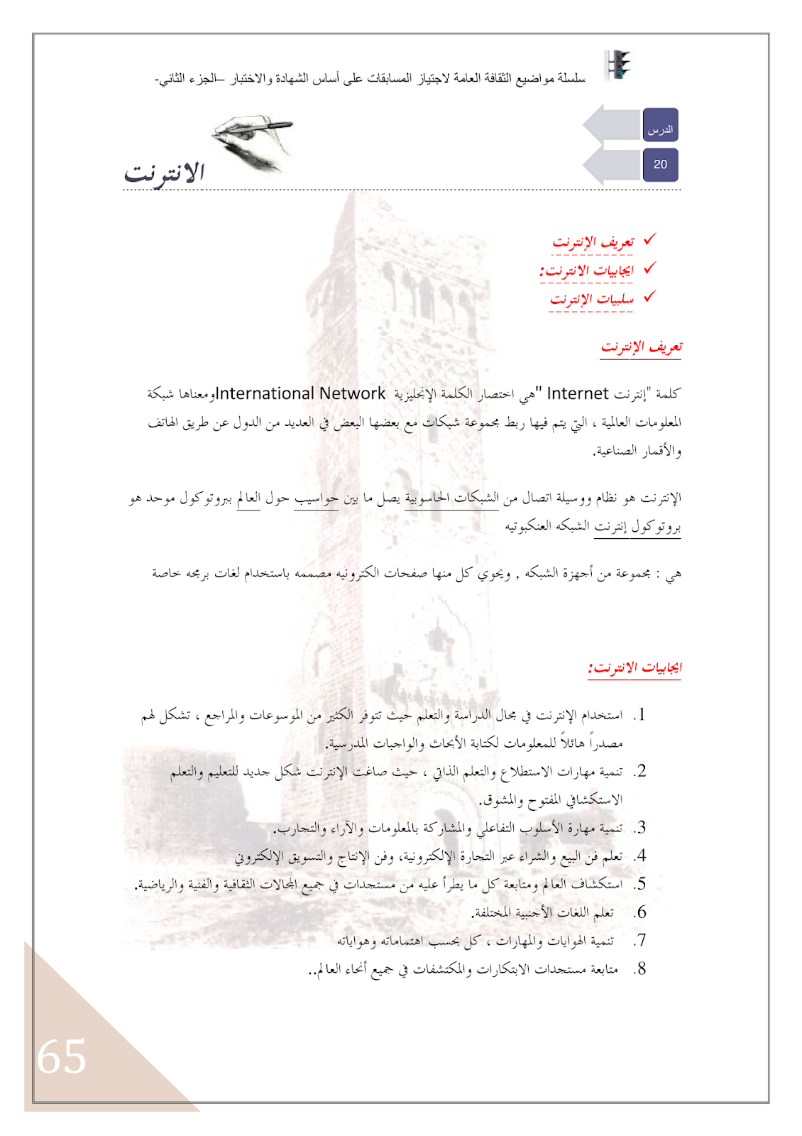 المعرفة Knowledge جميع مواضيع الثقافة العامة لمسابقات الوظيف العمومي على اساس الشهادة و على أساس الاختبار الجزء الثاني