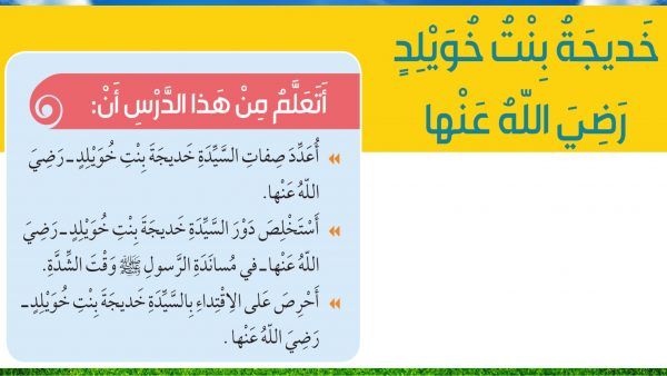 حل درس خديجة رضي الله عنها تربيةاسلامية الصف الاول الفصل الاول مدرستي الامارتية