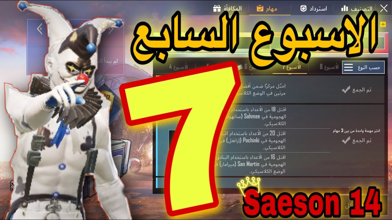 شرح مهمات الاسبوع السابع الموسم 14 ببجي موبايل الاسبوع 7 السيزون الرابع عشر Pubg Mobile Youtube