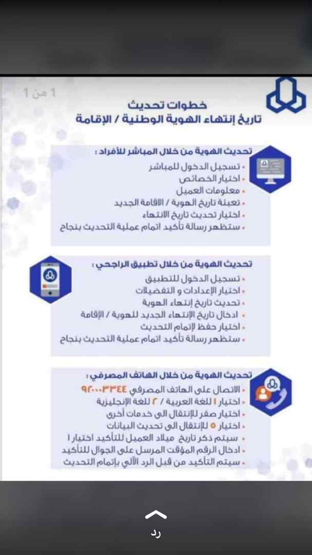 تحديث بيانات الراجحي عن طريق الهاتف او المباشر دون الذهاب للفرع بعد تجديد الاقامة أو الهوية علمنى