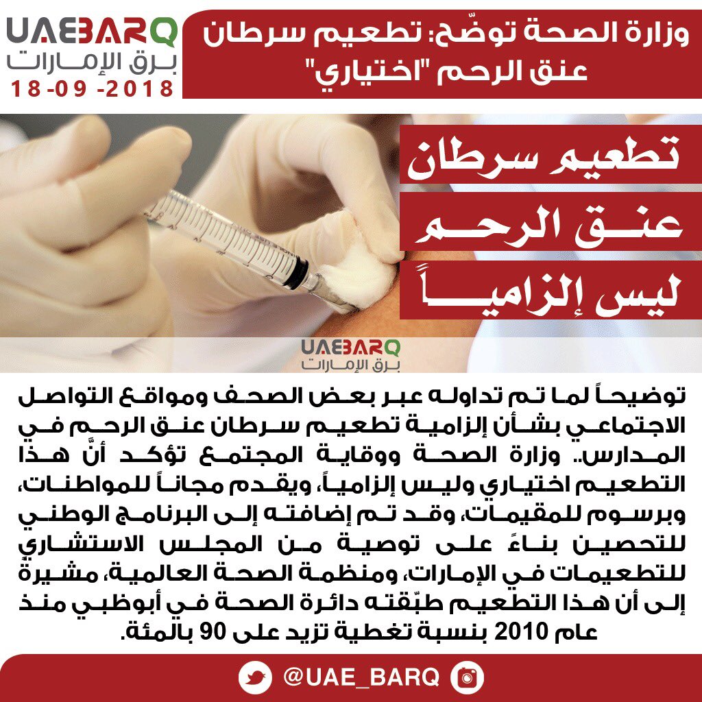 برق الإمارات Twitterissa وزارة الصحة توض ح تطعيم سرطان عنق الرحم اختياري برق الإمارات