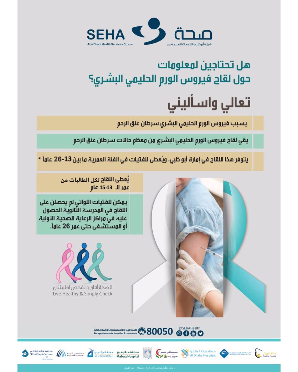 Seha شركة صحة Auf Twitter هل تحتاجين لمعلومات حول لقاح فيروس الورم الحليمي البشري افحصي أنا دوم أفحص سرطان عنق الرحم إحمي نفسك واطلبي إجراء مسحة عنق الرحم 80050 شركه صحه الامارات ابوظبي العين الظفرة Https T Co Exj8dcntim