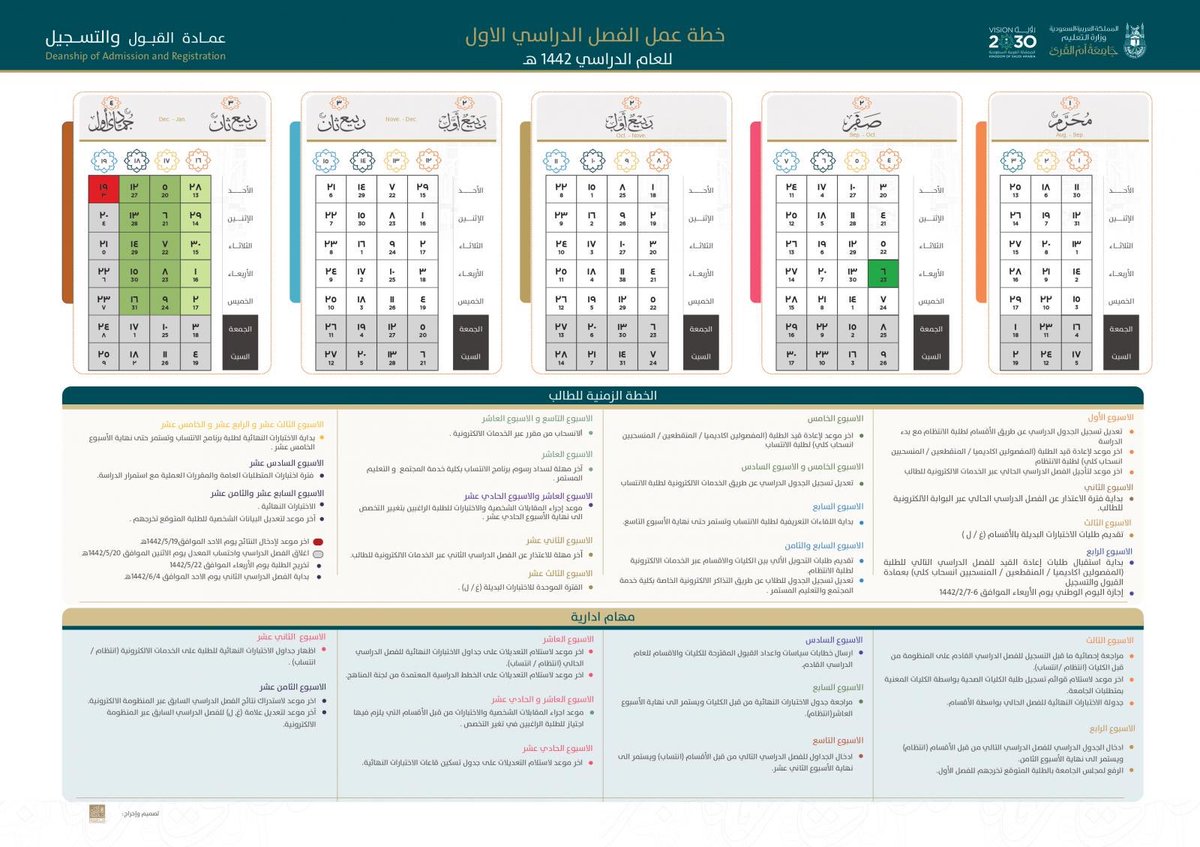 التقويم الجامعي ام القرى ١٤٤٢